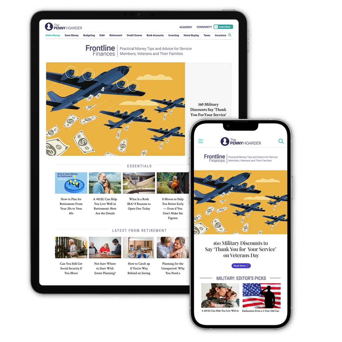 Design landing pages for new sections, Frontline Finances and Dear Penny. focused on the unique personal finance challenges for members of the military to make those articles easier to find and read.